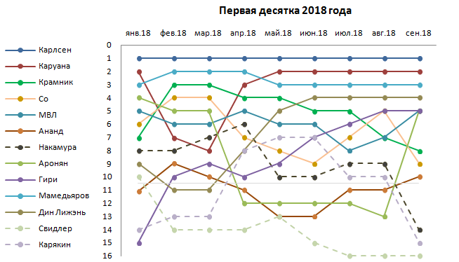 "Горячими пирожками" 2018 года продолжают оставаться Мамедьяров и Дин Лижэнь, оба свои рекорды поднимают и поднимают. Дин Лижэнь пробил 2800 и стал тринадцатым восьмисотником в истории, а Мамедьяров с новым показателем 2820 переместился с 11-ой строчки высших рейтинговых достижений (которую занимал с 2814) на 6-ую.