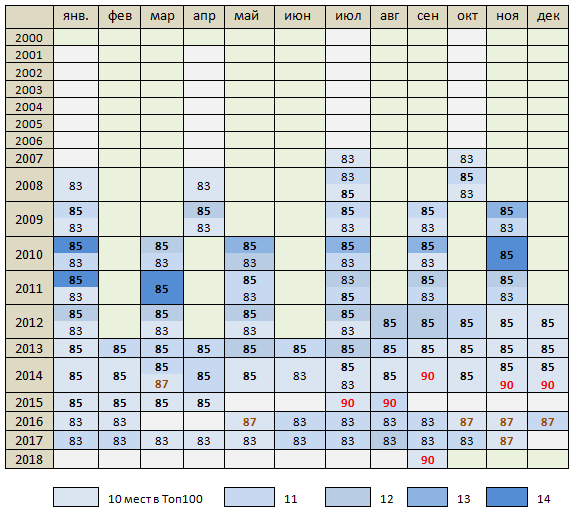 | благодаря этому баловству установлено, чему равна рекордная цифра - 14 мест в первой сотне. |