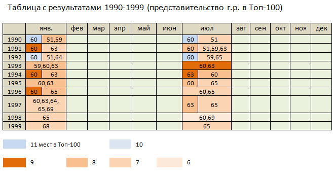 | jenya: Для этого хотелось бы посмотреть табличку топ 100 по годам хотя бы с 90-го года. |