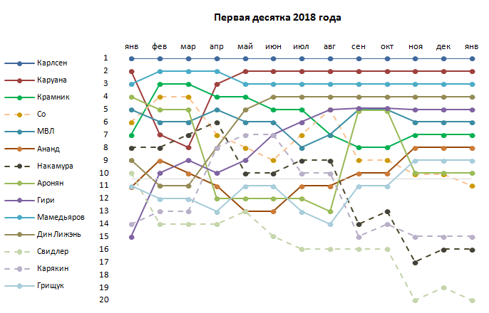 На этот раз в итоговой десятке года Со, Накамуру и Свидлера заменили Гири, Ананд и Грищук.