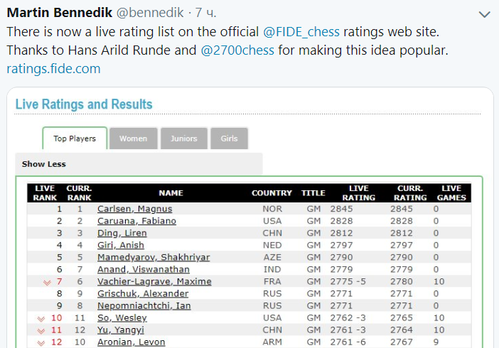 Главный вопрос в другом: зачем нам (и самой ФИДЕ) этот новый "псевдо-лайв" рейтинг? Для чего он? Я пока не понял.