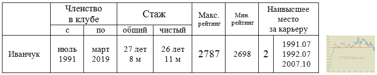 1) Понятно, что в "стаж" Камского включены те несколько лет, в которые он не выступал, но рейтинг выше 2700 сохранял.