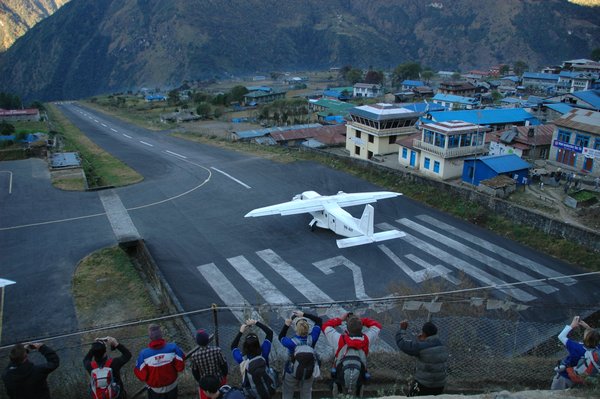 добираться много вариантов. можно долететь из катманду до луклы (городок с аэропортиком местным), а оттуда пешком до намче-базара за 1-2 суток вдоль реки. плюс-быстро, в лукле есть все! кстати, что бы не тащить тур.оборудование и не оплачивать солидный багаж , его можно закупить в лукле, потом там же сбыть, правда с потерей бабок. но зато налегке и без проблем с тасканиями. но есть свои минусы. погода,задержки рейсов, страшно для фобов-аэродром в горах не для слабонервных. фотки кидать не буду, напугаетесь еще. а если не боитесь, найдете сами. там метров 500 полоса всего и ....обрыв. лететь метров 700 вниз. уже без подъемной силы. плюс сама полоса наклонная. впрочем, одну кину для прикида)