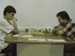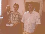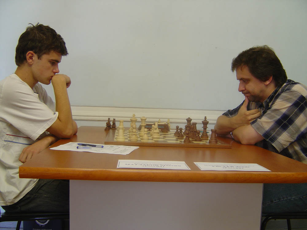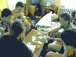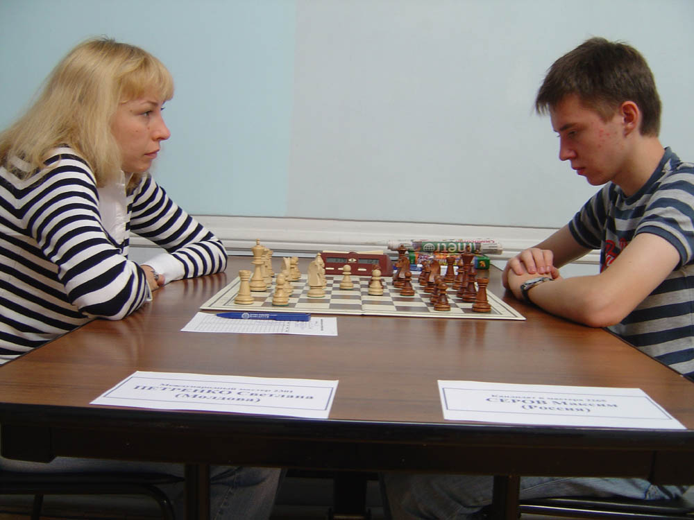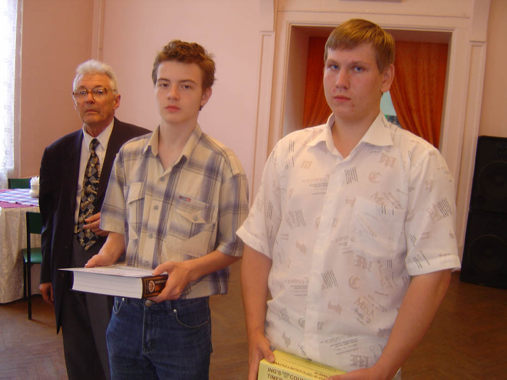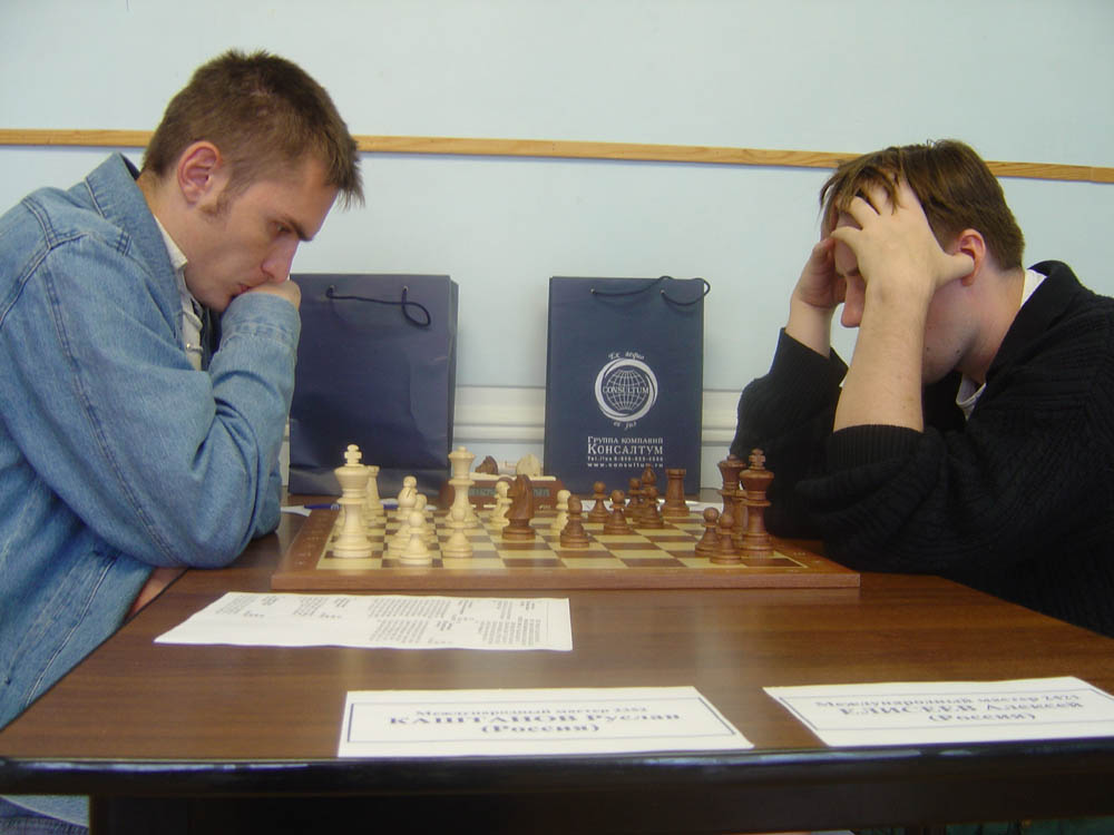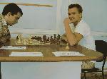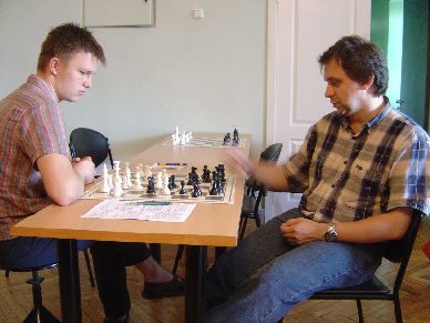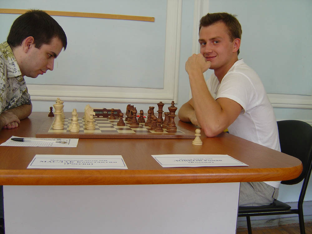Закончился шахматный фестиваль в Петергофе . Первое место в гроссмейстерском турнире занял мм Эдуард Горовых ,выполнив норму мг . На фото он слева , анализирует партию со своим тренером мг Евсеевым . На следующей фотке Иван Розум , выполнивший в двух турнирах две мастерские нормы , заняв 1 и 2 места |