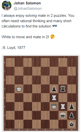 Всё, что я умею в шахматах (точнее умел в далёкой юности) - это решать задачки на мат в 2 хода. |