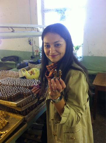 29.04.2011г. Александра Костенюк посетила фабрику по производству шахмат в Кировской области в г. Орлов (компания ОАО "Шахматы", сайт shahmati.my1.ru) вместе с губернатором Кировской области Никитой Белых.