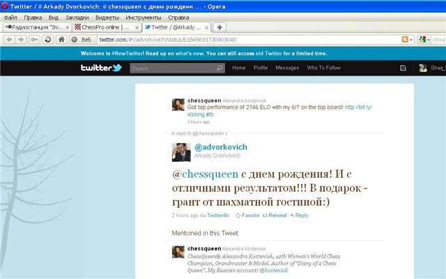 Судя по времени, это Дворкович присоединился к моим поздравлениям :)