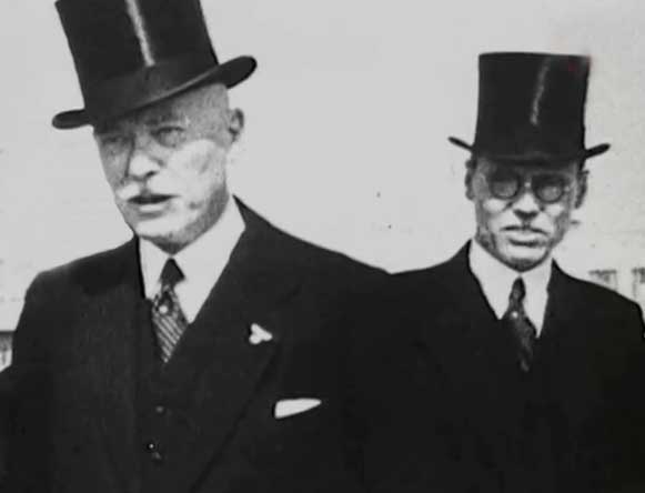 В этом кадре из киносюжета о встрече в Москве почтенного графа (после его безрезультатной аудиенции у Гитлера) справа от Шуленбурга такой же рослый человек в шляпе и в очках – это и есть Хильгер, 2-й советник посольства.