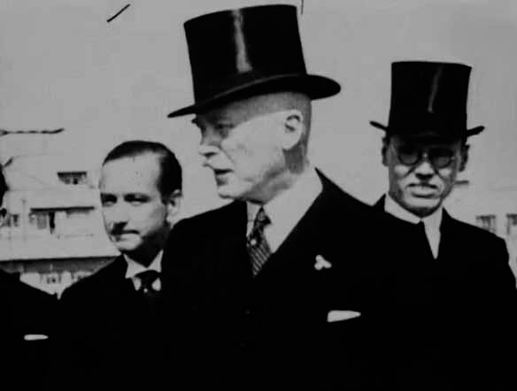 Сравните с нижеследующим кадром из той же кинохроники о встрече Шуленбурга его ближайшими сотрудниками на московском аэродроме. Напрашивается: человек слева от посла сильно похож на гезантшафтрата Вальтера…