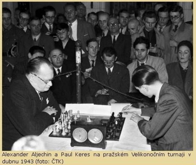 Алехин – Керес, Прага, апрель 43-го. (Фото прислал мой коллега, один из самых известных в мире шахматных историков пражанин Ян Календовский).