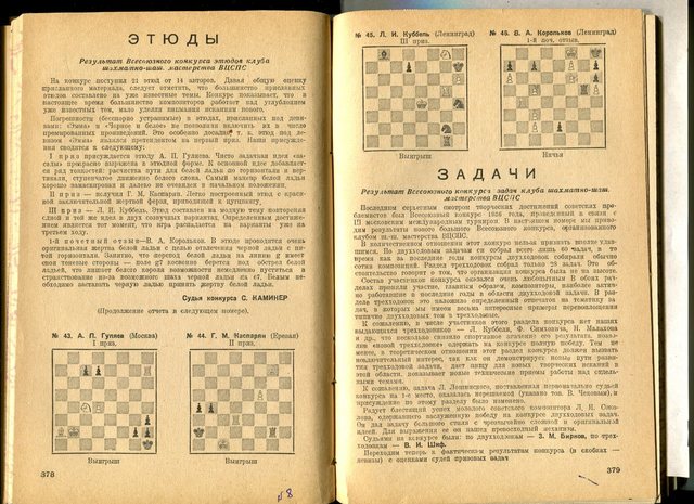 Безымянная завершающая публикация Конкурса ВЦСПС по этюдному разделу. Этот, 9-й номер «Шахмат в СССР» подписан к печати 25 сентября. Когда его тираж сошел с печатного станка, Каминера уже не было в живых…