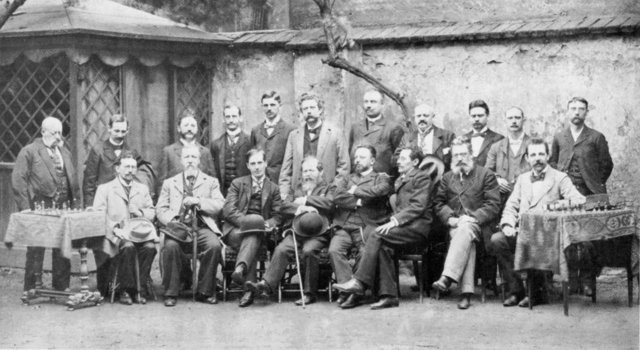 Вена, 1898 год. Одна из последних фотографий Вильгельма Стейница. Сидят перед Алапиным: Чигорин, Яновский, Шифферс.