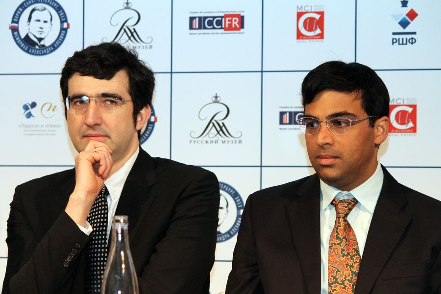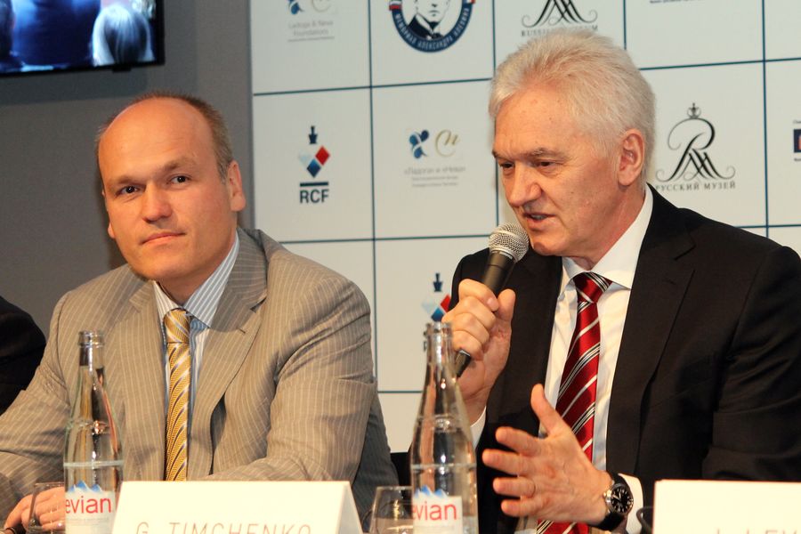 На пресс-конференции Геннадий Тимченко и Андрей Филатов рассказали о том, что остались очень довольны организацией матча Ананд – Гельфанд в Третьяковской галерее и решили продолжить это начинание – проводить шахматные соревнования в крупнейших музеях мира. И выразили надежду, что этот почин подхватят и другие бизнесмены-любители шахмат, благо выдающихся музеев в мире немало. Анатолий Карпов немного рассказал о турнирах памяти Александра Алехина, в которых и он принимал участие (занял первое место и в 1971 году, и двадцать лет спустя – в 1992). Владимир Крамник говорил о том, как ему приятно играть в городе, в котором он живет (его квартира находится в 10 минутах ходьбы от Тюильри), и о том, что Париж соскучился по большим шахматам. Владимир был весел и оживлен, часто шутил, обращаясь к сидевшему справа от него председателю Правления РШФ Илье Левитову. Лишь однажды он заметно погрустнел: когда чемпиону мира Виши Ананду был задан вопрос о том, с кем бы он больше хотел сыграть матч – с Магнусом Карлсеном или Владимиром Крамником? Кстати, чуть позже Андрей Филатов допустил забавную оговорку: он выразил надежду, что Владимир еще поборется за корону, а Виши «выиграет матч у Карлсена и сохранит корону для России».