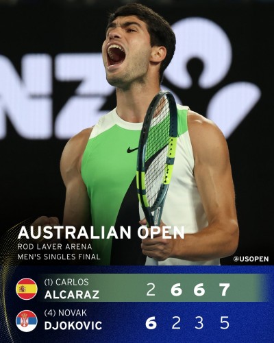 У Джоковича сейчас три карьерных шлема, но Алькарас имеет шанс в следующем году получить второй карьерный шлем в 23 года, если опять покорит Австралию. По два остальных шлема у него уже есть.