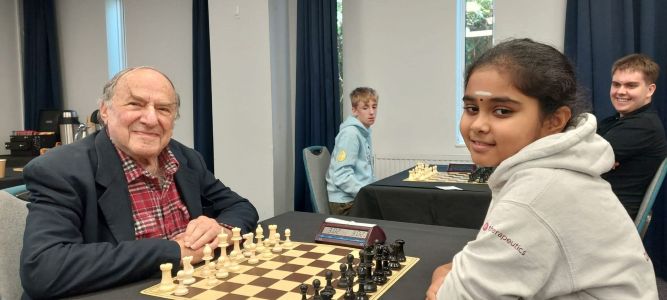 Какой день на Гранд-швейцарии ФИДЕ! Столько потрясающих историй и партий. Но сегодняшнее фото дня — не из Самарканда, а из Лондона. Бодхана играет с Джеймсом Шервином, которому сейчас 92 года. Джеймс, широко известный своей партией против Фишера, всё ещё в деле!