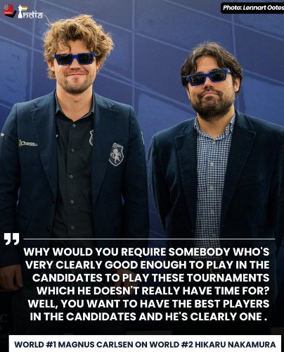 «Тот факт, что Накамура разъезжает и играет в этих, как он сам их называет, ссылаясь на то, что я сказал много лет назад, “мишачьих” турнирах, чтобы отобраться в Кандидаты, чтобы сыграть 40 партий, которые требует ФИДЕ… Я считаю, это абсолютно — это безумие. Это сумасшествие. Зачем требовать от человека, который совершенно очевидно достаточно силён, чтобы играть в Кандидатском турнире, чтобы он играл в этих соревнованиях, на которые у него действительно нет времени? Ну, вы хотите иметь лучших игроков в Кандидатах, а он явно один из них.»