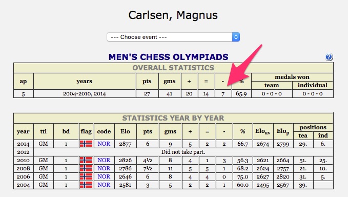 PS Кстати, ни разу не видел в этой теме развернутой статистики об участии МК в шах-олимпиадах. А хотелось бы увидеть, чтобы оценить как именно желторотые юнцы из сборной мира систематически проигрывают именно на этих соревнованиях шахматному гению.