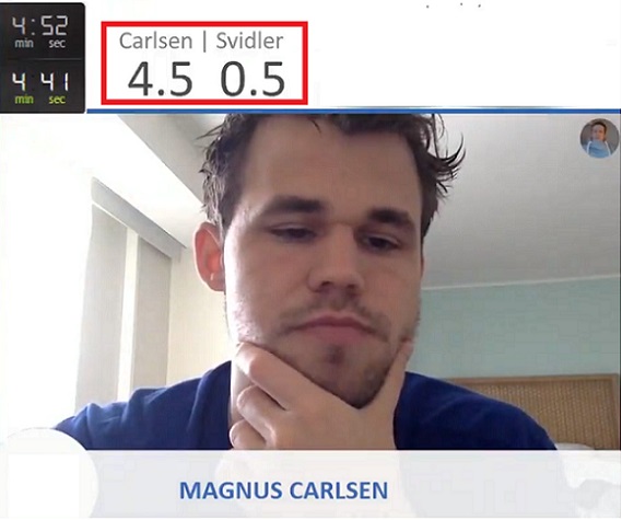 | Почитатель: А завтра по случаю 5-летия сайта Чесс24 состоится матч Карлсен-Свидлер - 5 минут без добавления, с обязательным трёпом (жаль что на английском), до пяти побед. |