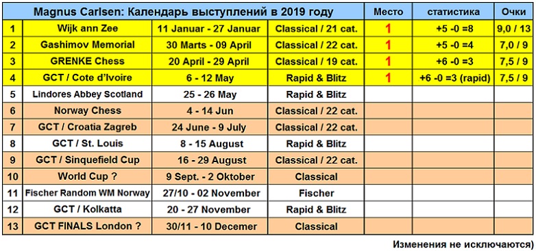 За четыре месяца этого года (за три турнира: Вейк, Шамкир, Карлсруэ-БаденБаден) Карлсен в 20 партиях с представителями "элиты" одержал 9 побед - больше, чем за весь прошлый год (56 партий: +8 -2 =46).
