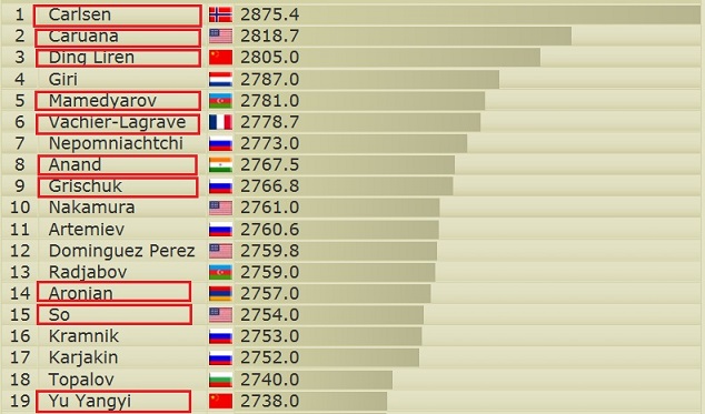 Сразу четыре шахматиста из состава NorwayChess 2019 - Мамедьяров, Грищук, Аронян и Со - выступают перед этим в ФИДЕ Гран-При в Москве, который обсчитают на 1/6. Это не позволяет произвести окончательные рейтинговые подсчёты для Ставангера (Altibox Norway Chess 3/6 - 15/6) в этом месяце. Пока всё указывает на то, что Магнусу потребуется минимум +4 (6,5/9), чтобы превысить собственный рекордный рейтинг 5-летней давности 2882.