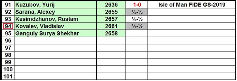 Когда "добрался" наконец до Биля-2018, то, отдуваясь), с облегчением перенёс уже имеющийся список из первоначальных (уже оформленных) семи партий. Самонадеянность: забыв про первый круг - даже не заглянуть в таблицу результатов Биля.