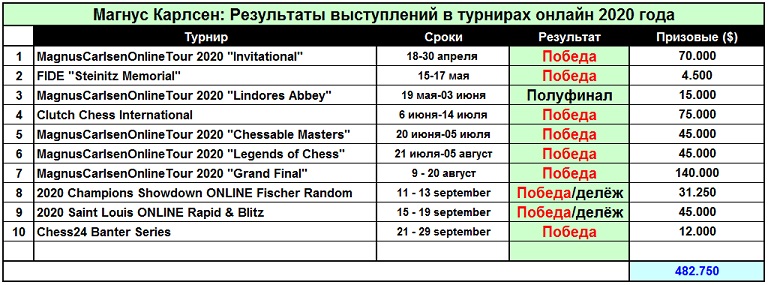 Великолепные таблицы в отношении статистики микроматчей Карлсена ведёт ув.Почитатель. |
