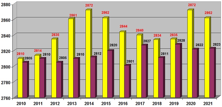 Когда Магнус Карлсен праздновал Рождество 2009 года, то он впервые обнаружил, что в последующем январском списке ФИДЕ он будет №1 рейтинга. Сейчас, по прошествию декабря, это повторится уже в 12-ый раз - лишь Гарри Каспаров в истории рейтинга показывал пример подобной и ещё большей стабильности. Сводная таблица и диаграмма иллюстрируют величины рейтингов Карлсена, называет его преследователя и указывает разницу в рейтингах на 1 января этих лет. Замечаем, что Каруана является преследователем Карлсена в шестой раз.