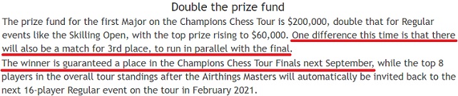 Они предложили общественности проголосовать (!) за одного из восьмерки неудачников первого турнира. В голосовании Антон обошёл Фирузджу (легко предположить, что среди премиум-членов chess24 испанцев элементарно больше, чем фирузджинцев). И это означало, что место во втором турнире никому из остальных неудачников первого предложено не будет.