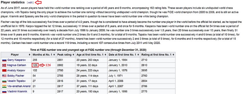 Кто поможет восстановить корректное число количества месяцев владения №1 рейтинга Карлсена в таблице Википедии?