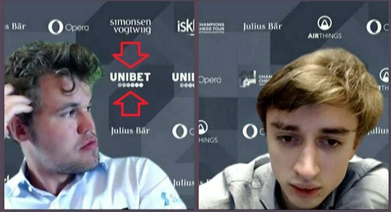 Госканал NRK, транслирующий турнир на Норвегию, после первого дня обратился к Карлсену с просьбой убрать противозаконную в Норвегии рекламу UNIBET в его рекламной заставке - см.фото. TeamCarlsen ответила отказом, мотивируя его нахождением за границей.