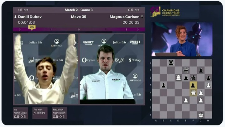 - Даниил связался со мной после окончания матча и извинился за якобы несдержанность в секунду торжества победы. Я ответил, что во-первых не видел этого, а во-вторых, в принципе, мне намного более симпатичны люди, открыто проявляющие радость победы надо мной. Мои поздравления очень достойному сопернику и замечательному парню.