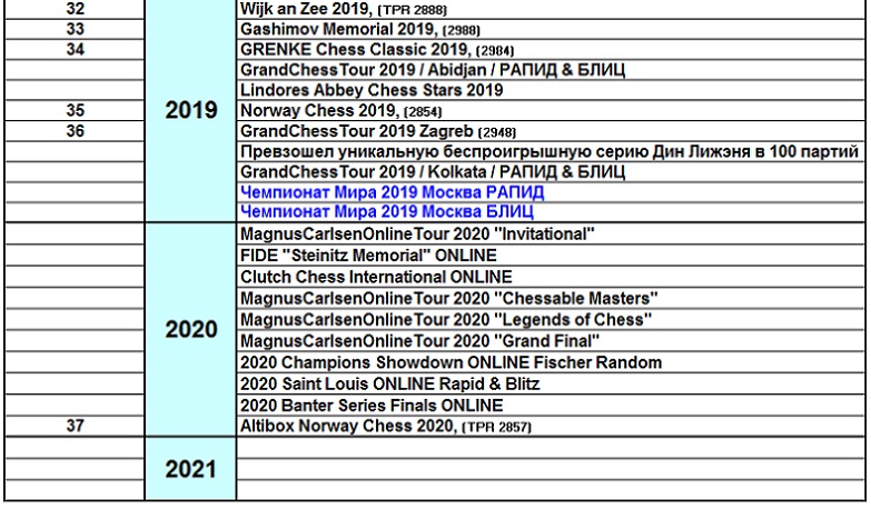 In 2021, Carlsen will have a busy schedule with eight tournaments remaining in the Meltwater Champions Chess Tour, Altibox Norway Chess and preparation for his fifth World Championship match, likely to take place in Dubai at the end of the year. |
