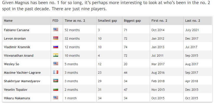 Исполнилось 11 лет владения №1 рейтинга Магнусом, из них последние 10 лет были непрерывными.