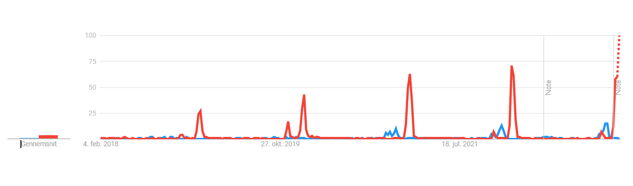 | Another way to look at the data is on YouTube. Below you can see a comparison using Google Trends between searches on YouTube for Speed Chess Championship (Blue) and Tata Steel Chess (Red) |