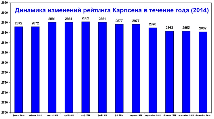 Да, ничто не ново, кроме рейтинга, упавшего за 12 месяцев всего лишь на10 пунктов. После Баден-Бадена на 1 марта 2015 будет 2863 ***, а это всего лишь 19 ЭЛО меньше чем ("прыжок Бимона") рекордный 2882. Думаю, кстати, что "спад") определённым образом связан с необходимостью защищать титул. Кажется Каруана весной прошлого года сказал: