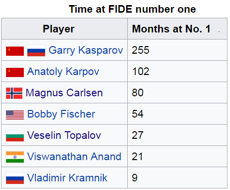https://en.wikipedia.org/wiki/List_of_FIDE_chess_world_number_ones