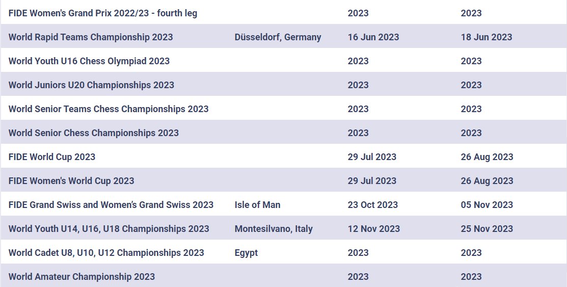 @FIDE_chesshas a lot of events without dates or organisers in the calendar in 2023.