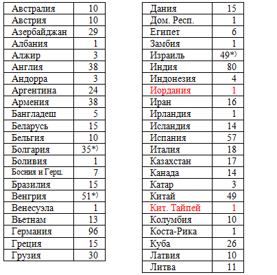 Опираясь на ту таблицу, мне оставалось "всего лишь" (!!) убедиться в том, что имеющиеся изменения в гроссмейстерском штате 88 федераций вызваны только последними трансферами. После чего - перейти к просмотру федераций, гроссмейстеров к февралю не имевших. И среди них наткнуться, наконец, на Иорданию.