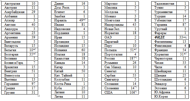 Почитатель: И можно обождать еще пару-тройку дней, когда изменения титулов будут отражены в личных карточках игроков. И тогда уже обновить табличку распределения числа гроссмейстеров по национальным федерациям. Больше "для порядка" ("рабочего" интереса табличка не представляет): с момента её обнародования случилась еще и куча трансферов.