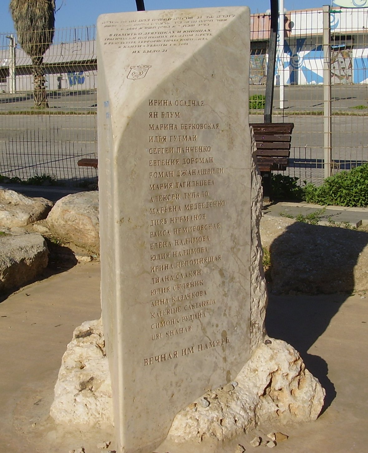 Вечером 1 июня состоялась ежегодная траурная церемония в память о жертвах теракта на дискотеке в "Дельфи". ... 1 июня 2001 года террорист-самоубийца привел в действие взрывное устройство в толпе подростков, которые стояли у входа в популярную тель-авивскую дискотеку "Дольфи". Погиб 21 человек, 120 получили ранения. Большинство пострадавших составили новые репатрианты из бывшего СССР. Семеро погибших, а также многие раненые были учащимися тель-авивской школы "Шевах Мофет", популярной среди русскоязычных израильтян.