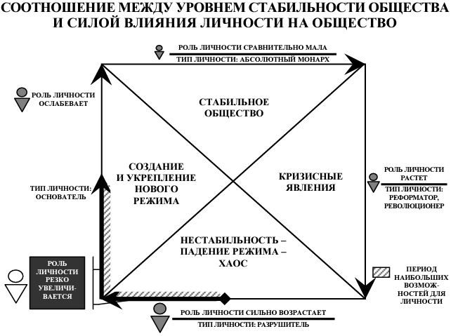 strumball:И никому здесь почему-то не приходит в голову, что все и и правы и неправы одновременно. Ведь влияние личности в исторических процессах - тоже волновая функция! и ее роль будет сильно зависеть от состояния всей социальной системы: в неравновесном неустойчивом состоянии (точке бифуркации) роль личности будет максимальна и существенна, а в состоянии организованной стабильности она минимальна. Примерно так...