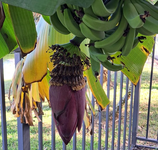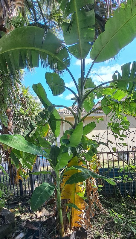 Недавно в этой теме состоялась краткая беседа про бананы. Поскольку я сегодня улетаю из Флориды, я напоследок сфотографировал два вида у дочки на участке (а вообще пишут, что сортов сотни). Один еще (или сейчас) не плодоносит, но сорт у него экзотический - называется ice cream banana, запах ожидается ванильный. Плоды даже голубыми бывают.