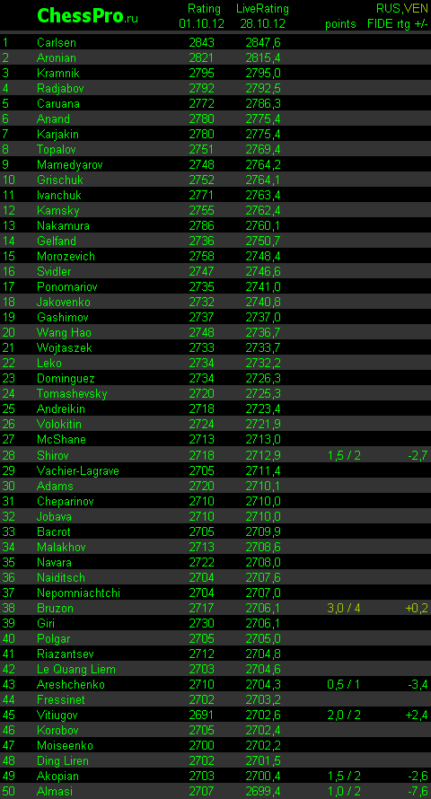 LiveRating Club 2700 - 28.10.2012
