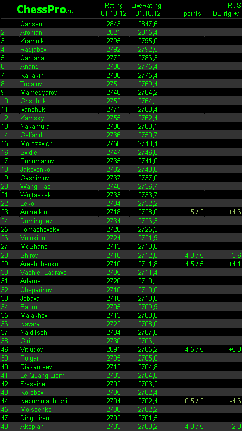 LiveRating Club 2700 - 31.10.2012