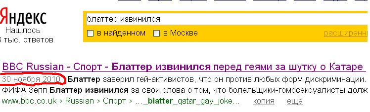 "После оглашения решения ФИФА его глава Зепп Блаттер поспешил успокоить любителей выпить: в Катаре не будет запрета на употребление алкоголя. Для фанатов нетрадиционной сексуальной ориентации у президента ФИФА наготове был лишь ироничный совет - он порекомендовал им отказаться от любой сексуальной активности на время ЧМ" ( ) , - продолжает автор.