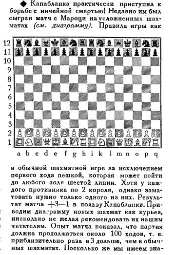 В свое время легко было предвидеть, к чему поведет отказ от творческого понимания шахмат. В результате этого отказа выросла школа «реформистов», возглавляемых Капабланкой. «Реформисты» утверждают, что прогресс теории ведет к омертвению шахматной игры и предлагают оживить ее путем изменения шахматных правил. Но что означает такое утверждение?