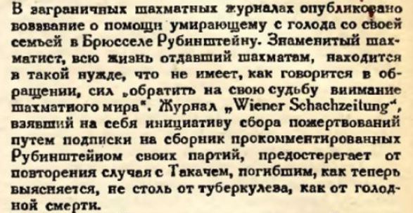 | любопытно, что сборник партий, как я понимаю, так никогда и не вышел. а рубинштейн прожил еще 20 лет. |
