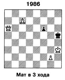 Задача на цугцванг, у черных оба коня играют вовсю, и в зависимости от того, какой и куда идет, вторая ладья становится на одно из четырех полей ослабленной четвертой горизонтали. Нет, это совсем не "задача одного хода" |