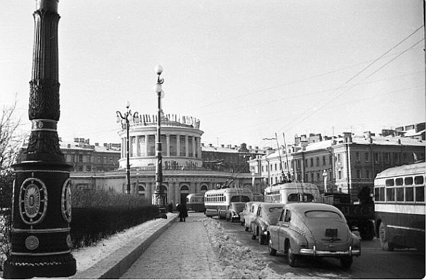 Ленинградское метро перевозит пассажиров с ноября 1955 года. На фотографиях, сделанных в 1956 году, одна из первых станций --