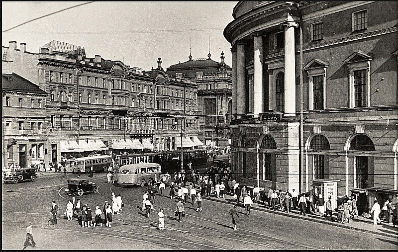 Удивительно как мало изменился Невский за целый век. Трамваи только перестали ходить.)